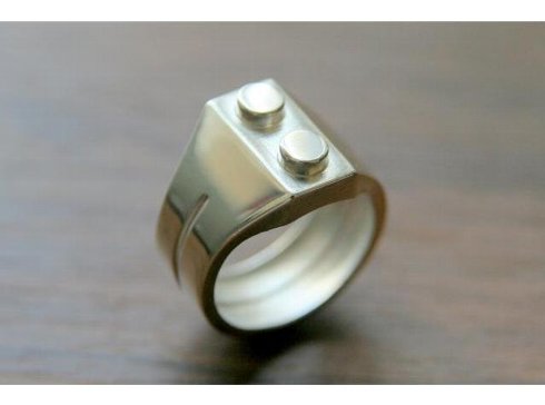 遊びごころいっぱい!シンプルでカッコイイ、レゴをモチーフとしたリング。シルバーっぽいですがシルバーではないようです。日本製