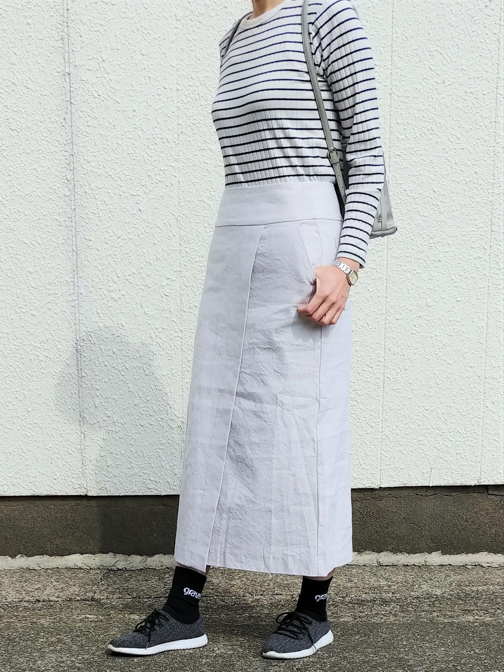 こんにちは!朝はスッキリしないお天気でしたが、日中は晴れて暖かかったですね寒い日と暖かい日とまちまちなので、毎日何を着ようか悩んでしまいます(^^;)天気が良い日はお出かけしたい!でも今はお家で過ごそう!!・・ということで、ブログでほんの少し息抜きできたら嬉しいですお気に入りのお洋服を広げて、お部屋でファッションショーしちゃいましょう本日は当店の人気ブランド・Leshy forest (レーシーフォレスト) の新商品をご紹介致しますボトムス Leshy forest ¥14,000→20%off ¥11,200+税こちらのロングタイトスカート、形がとてもキレイ〜❣️張りのある生地なので体のラインを拾わず、白色なのに着痩せ効果があります😆👍ラップスカートのようなデザインですが内側がしっかり縫われているので、めくれる心配もありません(^^)💕あまり伸びない綿麻素材なのですが、動きやすく着心地もバッチリでしたよ☺️ボトムス Leshy forest ¥14,000→20%off ¥11,200+税白地にストライプ柄が爽やかな麻100%のロングスカートです風を通しやすいので、夏には重宝すること間違いなしですウエストゴムで履きやすいですよ裏地が付いていないので、ペチコートの着用をお勧めします!☆ラインアットでもお得な情報を発信中☆ラインアットにご登録いただければ、お問合せもとってもスムーズに☆こちらからのメッセージ配信は週に1回程度ですが、お友達限定のお得なお知らせが多数ございますので、ぜひ登録をお願いいたします!!!楽天市場店でエレガンスミュージアムの商品がご覧になれます♪お得なイベントも盛りだくさん!!楽天市場店はこちら