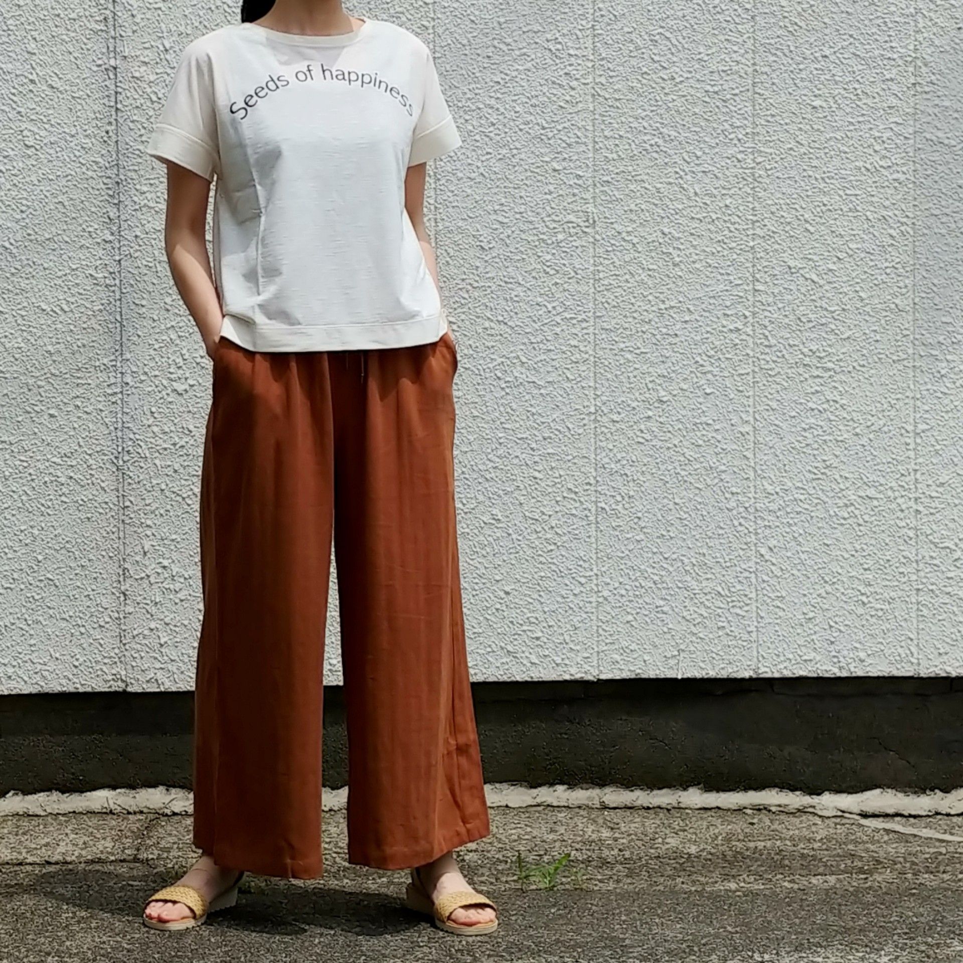 今日はお昼頃から曇りベースになりましたが、暑い一日になりましたね夏服で過ごしても良いくらいでした本日は暑さに負けないおしゃれアイテムをご紹介いたしますトップス Leshy forest ¥6,900+税ホワイト・オフホワイト・ネイビー綿100%で、身幅が広くゆったりしているので、とても涼しく着れます(^^)スッキリした着丈なので、このくらいワイドなパンツにも合わせやすいですね👍✨飽きのこないシンプルなロゴがオススメです*\(^o^)/*ボトムス Z of Zampa Oraganic ¥7,900+税ナチュラル・テラコッタ・ブラウンボトムは綿70%×麻30%のワイドパンツです😃ウエストゴムですごく楽ちんです❣️もちろん風通しも抜群*\(^o^)/*これからの暑い季節、サラッと履ける麻混素材はサイコーですね💕トップス z of zampa organic \4,900+税ホワイト・ベージュ・ブルーグレー・チャコール綿100%のベティちゃんTシャツですベティちゃんファンの方は必見のアイテムです!ドロップショルダーで袖丈も長めなので、ゆったり着れます合わせるボトムスによってはイン、アウト両方楽しめますよ♪