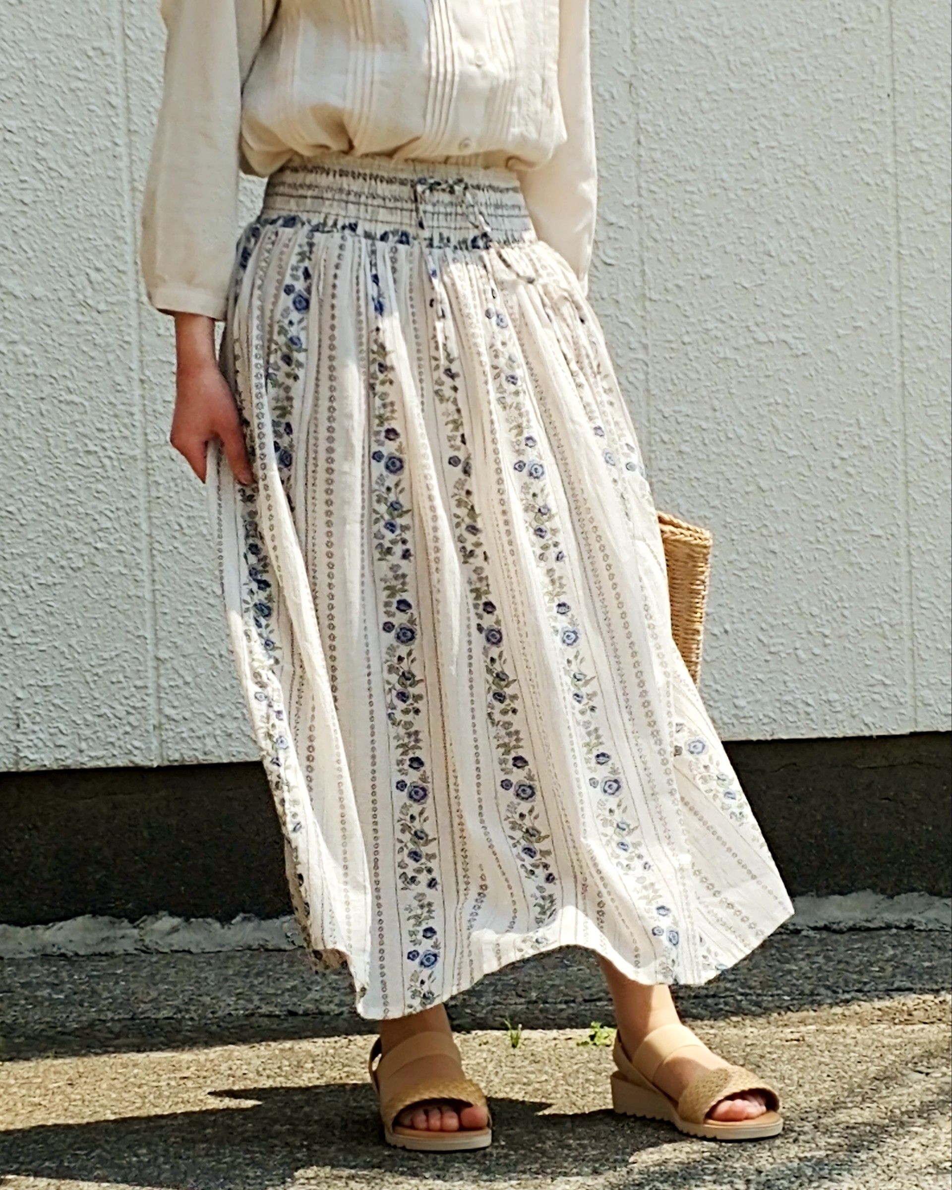 えちゴンぬりえに関してはこちらこんにちは(o^^o)今日も暖かい?暑いくらいの。。。1日でしたね〜☀️お店の中にいると、時々ふわっと入って来る風が、気持ち良く感じられましたぁ😊今日は、夏も着れる新入荷アイテムをご紹介致しますね💕cloudnine スカート ¥2,700+税 Col:アイボリー、イエロー、ネイビー涼しげな花柄が夏にぴったりのスカートです表地、裏地ともに綿素材なのでとても涼しいです◎ウエストゴムで履きやすく、紐で調節出来ます!ウエストの紐はリボン風になるので可愛いです(モデル身長:151cm)cloudnine ブラウス¥2,900+税パンツ¥3,300+税 Col:ネイビー、ブラックダボっとしたシルエットが特徴のパンツです素材は表地が麻とレーヨン、裏地は綿素材でこちらも涼しく履けるアイテムです♪裾は丸~くスリットが入っています!(モデル身長:151cm)☆ラインアットでもお得な情報を発信中☆ラインアットにご登録いただければ、お問合せもとってもスムーズに☆こちらからのメッセージ配信は週に1回程度ですが、お友達限定のお得なお知らせが多数ございますので、ぜひ登録をお願いいたします!!!楽天市場店でエレガンスミュージアムの商品がご覧になれます♪お得なイベントも盛りだくさん!!楽天市場店はこちらインスタグラムもぜひご覧ください☆