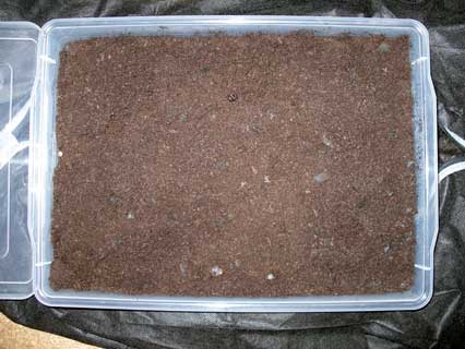 2日ぶりにエレファス幼虫のケースをチェックしました。24頭入り初2令幼虫のシステムコンテナのうち1枠が妙でした。1枠だけ異常にマットが減っているんです。しかもフンだらけ。(画像で見えているのは大納言小豆くらいの大きさのフンです^-^;)フンだらけだったので、フンをピックアップしてからマットを追加してあげることに‥。ところが‥、フンを取り終えると、マットは他の枠の半分以下になってしまいました。その上、幼虫の姿がいつまで経っても見えてこないのです。最下部まではチェックしませんでしたが、もしかしたら、フタをした状態でも仕切りとフタの間には空間があるので、仕切りを乗り越えて隣に移動したのではないか、と‥。これから、幼虫探索です(^◇^;;;;;;;;;