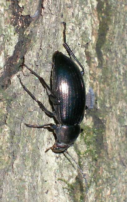 昨日は、朝6時台と夕方4時台に、長男と徒歩2分のところにある公園に樹液採集(の予行演習^-^;)に行きました。ウチの周辺でカブクワが採れるはずもなく、当然ターゲットはブンブン系です。まず最初に毎年巨大なドングリを提供してくれるコナラの木に行ってみました。どの木が樹液を出しているかなんて、これまで気にしたこともないので、手当たり次第に木を見て回ろうと思ったんです。そのコナラを見てみると、全く樹液が出ていません‥。でも、かすかにカブクワ用ゼリーのようなにおいが‥。ふと足元を見ると、地面から5cmくらいのところに樹液が、さらに1匹のブンブンが!さっそく長男に確保させました(^-^)vさらに公園を見て回りますが、樹液がたくさん出ている木を発見。しかし、高いところで虫もキイロスズメバチ1匹のみでした。結局、近所の公園で樹液が出ている木は2本だけ、夕方にまた同じ木を見てみることにしました。そして、夕方、1本目の大きなコナラには、また1匹ついていたそうですが、すぐに飛んで逃げたそうです。朝、キイロスズメバチがいた木では、なんとキイロスズメバチ1匹、ブンブン系4匹が樹液を吸っていましたが、スズメバチがさかんにブンブンを攻撃していました。スズメバチに注意すること、スズメバチがいたら手を出さないこと、を長男に教えました。夕方は収穫ゼロと思っていたら、帰り道に地面で仰向けになって脚をバタつかせているブンブンを発見。手にとって見ると、なんと羽化不全で羽が開き、両後ろ足のフ節が伸びておらず使えないようでした。だから仰向けで元に戻れなかったんですね。この子もお持ち帰りで、長男の飼って観察することに‥。(飼育ケースはいつもの通り、DVDスピンドルケースにヒノキチップです。)さて、お持ち帰りのブンブンを図鑑で調べてみると、ブンブン代表の和名『カナブン』学名『Pseudotorynorrhina japonica』でした! 大きさも30mm近くありそうな最大級のカナブンです。この個体は、カナブンのメス。図鑑を見ると、アオカナブンはそうはいかないんですが、カナブンはメスとオスで前足の太さが2倍くらい違い、メスは産卵用かすごく前足が太いんですね。樹液吸いのカナブン、ハナムグリの特徴は、しょくぱんマンのような四角い顔。葉っぱ食いのコガネムシの仲間は丸い顔をしています。アップで見てみると、肉眼でもなかなか気づかないような点刻がたくさんあることがわかりました。