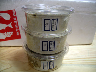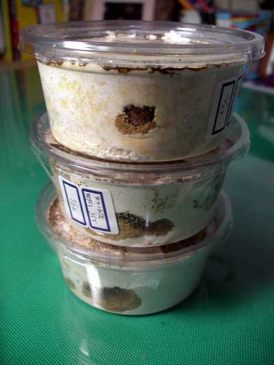 クワクワよっしーさん、D☆KUWAさん、ありがとうございました今朝、タランドゥスオオツヤクワガタの幼虫達が到着しました~。大切に飼育させていただきますさぁて、ちょっと緊張してます。なにしろカワラ菌糸に入った幼虫が来たのは初めてのことなので(^◇^;何もわかっていません‥。まずプリンカップの上面の菌糸って剥がさなくて良いのでしょうか???なんだか息苦しそうで心配になってしまいます‥(^◇^;それから、今後の菌糸はどこのカワラ菌糸にしようか‥と。実に楽しい悩みですね(^-^)(これでタラ♀の産卵も、心置きなく4ヶ月前の交配のままもう一試しできるというものです。)う~ん、どこの菌糸にしようかなぁ‥。