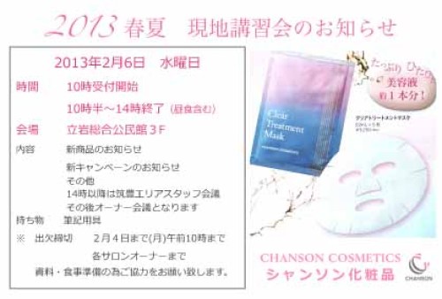 キープボックスにお花が付いてます。まるで当選確実みたいですね。店長がせっせとお花を作って、エステ来店のお客様のキープボックスに付けるのです。 期間は今日から3月7日までの2ヶ月間。そして3個付いた方は、この「クリアシートマスク」を1袋(875円)をプレゼント。 この期間はお肌乾燥注意報の連続。保湿を気にして欲しいのです。ついつい寒いから…っておさぼりしがちになるでしょ?だから、あえてエステ啓発期間を設けました。