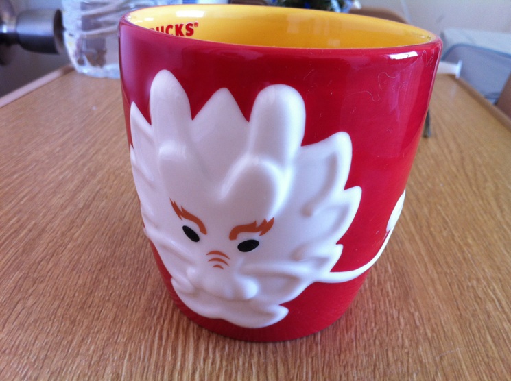 明けましておめでとうございます。いよいよ2012年が幕をあけました。辰年というわけで、飛躍の年になるといいですね。というわけで、スターバックスで龍のマグカップ購入。こんなデザインもあるのね。さて年が明けてすぐ、病院を抜け出して、歩いて15分ほどの浅間大社に友達と初詣に行きました。初詣に行くこと自体、おそらく20年ぶり。浅間大社にに初詣というのは、物心つく前に連れてこられて以来です。夜中なのに人がたくさん!夜店がたくさん!活気があって楽しかったです。参道は思ったほど混んでいなかったのですが、本殿が近づくに連れて大渋滞。ここはTDR?というような混み具合でした。1時間ほど並んで、ようやく参拝。考えたらポケットには小銭しか入ってなかったので、お札も破魔矢も買えずに、代わりにチョコバナナを購入。甘酒を飲んでホッコリしたあと、病院に戻りました。普段は9時半には消灯してしまう病院も、大晦日は夜更かしOK。元旦の朝食には、おせちに入ってそうな料理が出ました。午後には同僚のCさんと旦那様が来てくれました。テレビをつけなければ、普通の日と変わらないお正月です。初詣のおかげで眠いですが、のんびりゆっくりした一日になりました。