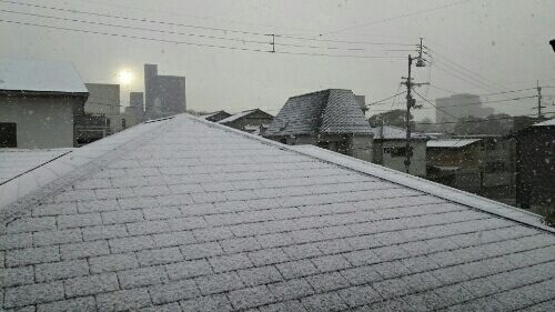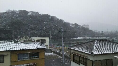 徳島 朝 起きた時は 屋根に うっすら 雪だったのに 8時前から 粉雪が 舞ってます おお寒