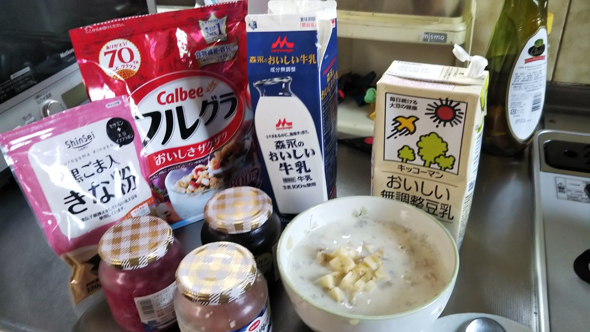 私の朝ごはん 🍜に ヨーグルト 少しのホワイト チアシードいれ 豆乳 キウイ 🍌 甘夏 黒ニンニクひとつぶ プルーン3つぶ 小さく切り入れ 次に きな粉 フルグラ5さじ 玉ねぎ しょうが ブルーベリージャム 混ぜ混ぜしながら 食べます お腹🈵