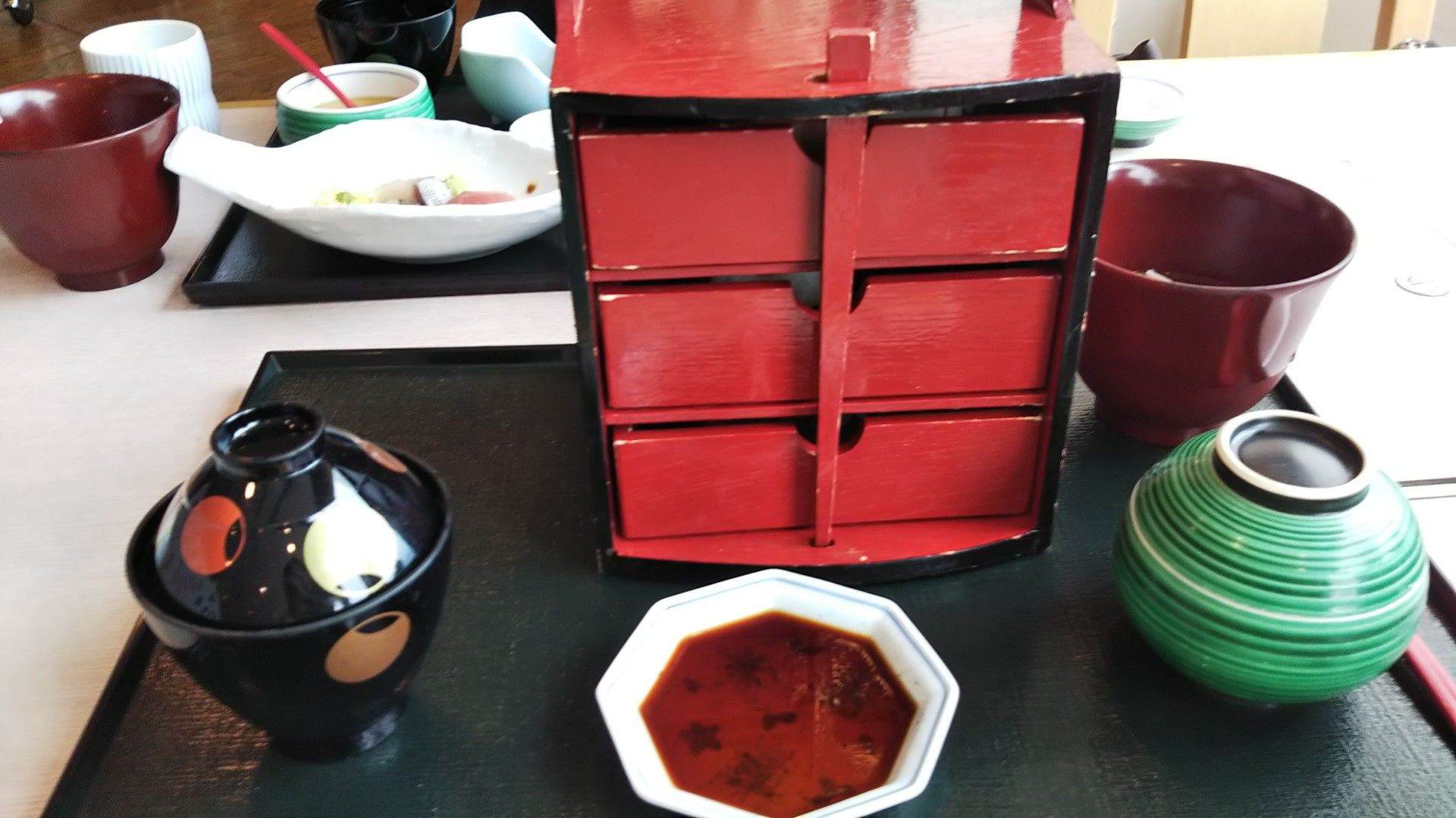 2日の夜中 杉田が予選 勝ち上がりナダルと 試合が 始まったので 夜中 最後まで見て8時30分まで ぐっすり💣️💤 テニスば 行かれんと思ってくつろいでテレビ見てたら 宮ちゃんから コートに誰もおらん 早く来いとの😃📲 ご飯も まだなのに 菓子パン かじって 参加 五人揃い12時まで テニス 予報どうりに雨芽パラパラ 阿波観で ランチ 私 7月誕生日で寿し御膳 三段重箱は寿し 🍴🈵😍 12時に行ったので 満席 ちょうど 一人ランチの オバサンが どうぞ 言うてくれ 相席させてくれ 宮ちゃんと三人でワイワイ楽しいランチだった