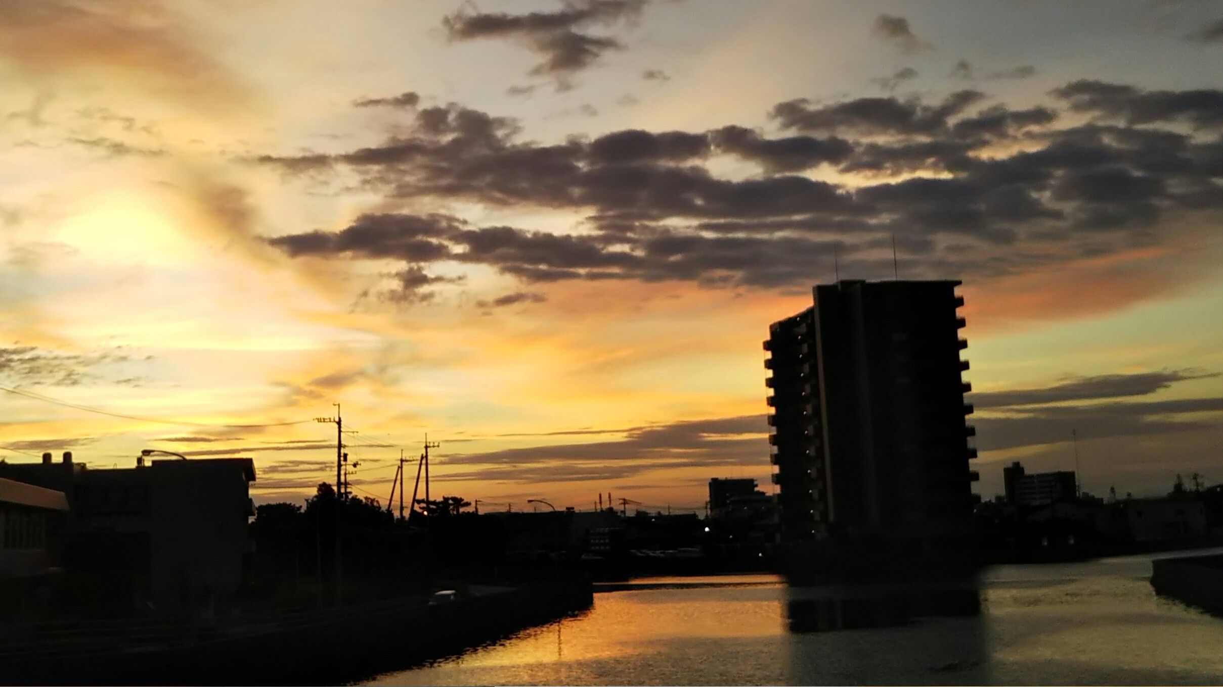 5時30分 曇り 傘持って 出発 助任橋から いい天気? 県チョピアから 眉山 アサちゃん 今朝も 来てない 10352歩
