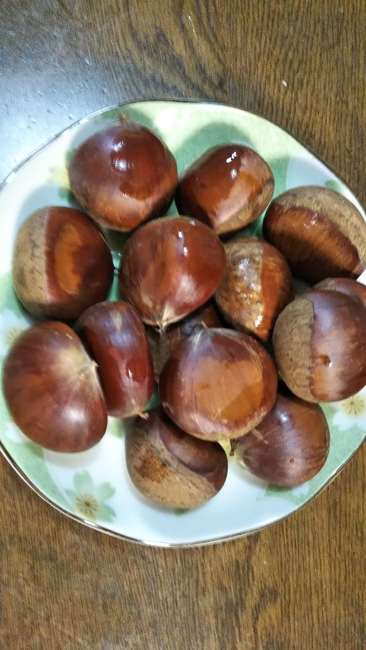 カズちゃんから 立派な 栗を 頂き 一瞬 栗ごはん と 思ったけど 栗が 大きく りっぱなので 茹がいて 頂きました 美味しい 😃⤴️⤴️