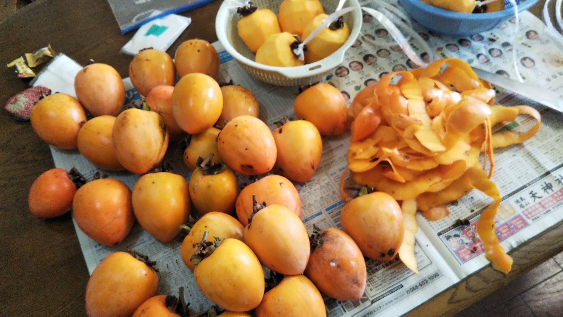毎年 柿が 届くけど 今年も 兄貴から 届く 早速 ムキムキ きれいに 乾きます ように