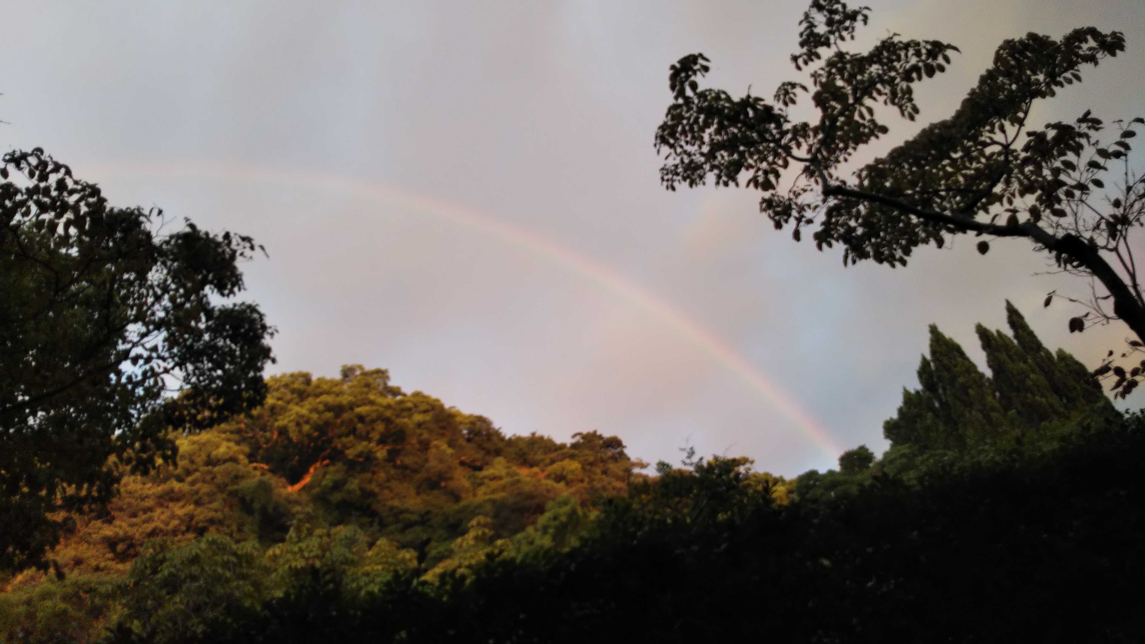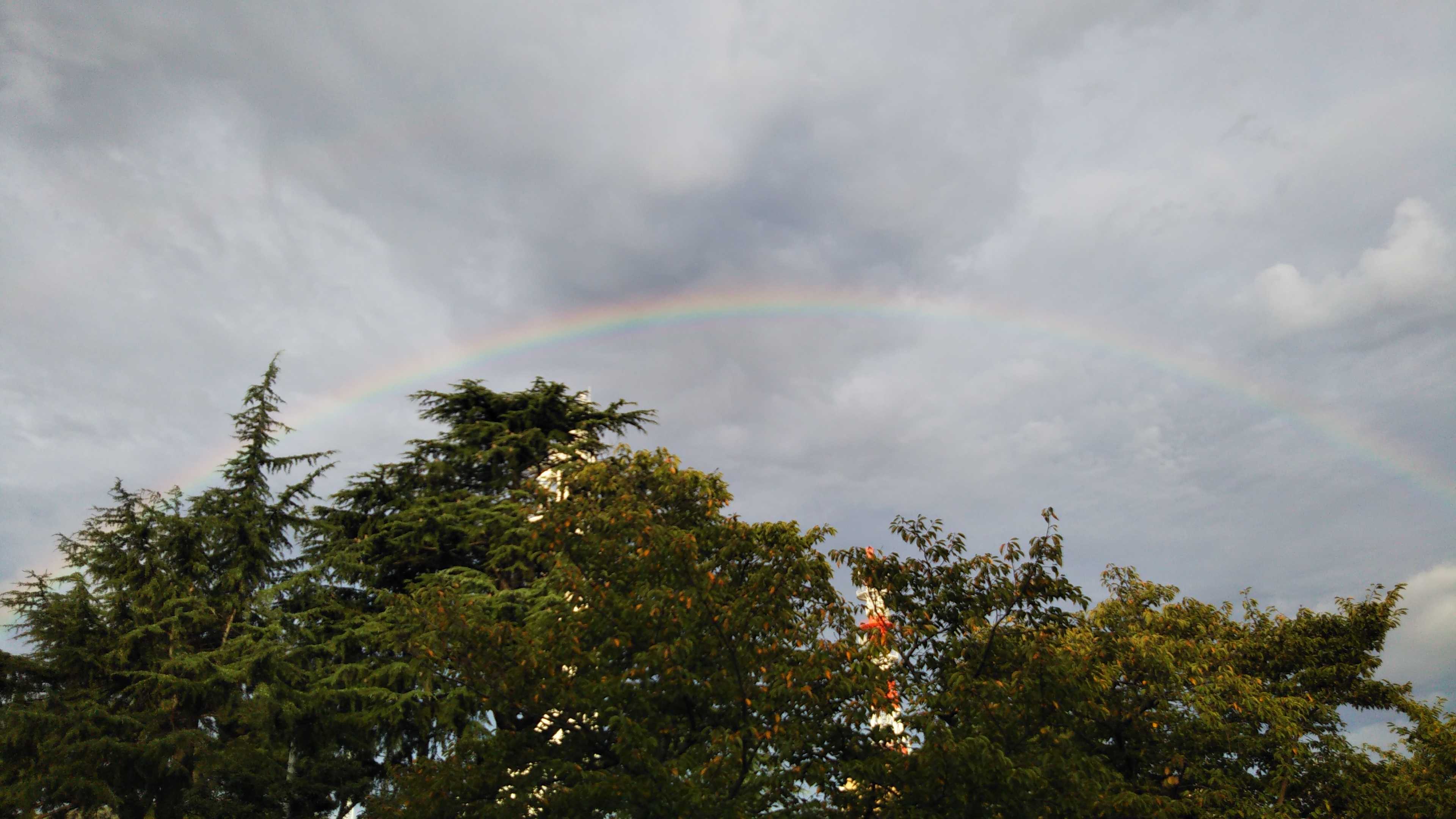 ゆっくり 寝て 5時30分過ぎに 家を出る 助任橋 渡ると ポツポツ 雨? 犬 散歩の 人に 虹 出てるよ 教えて貰った 西の空 出てる びっくり