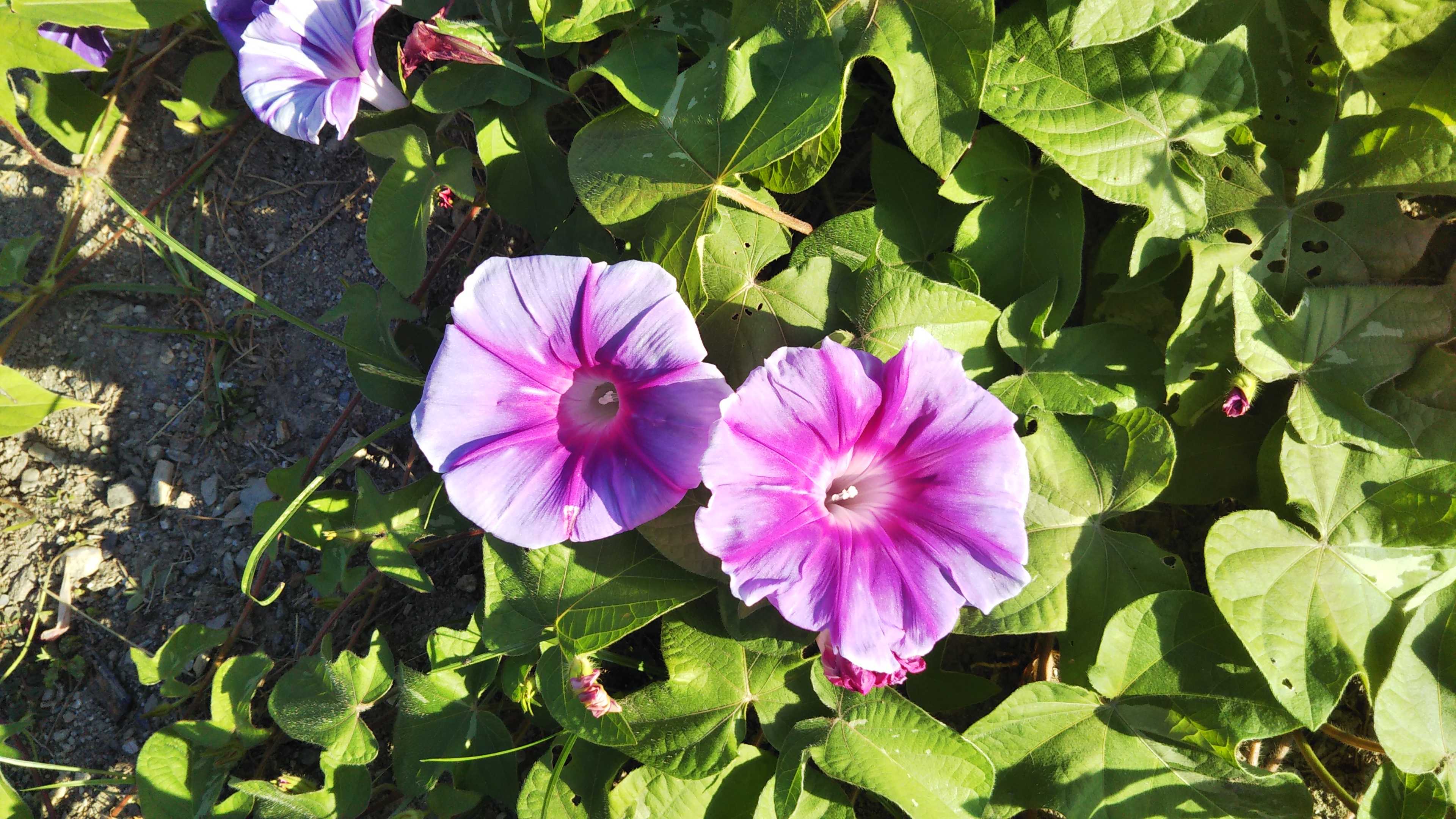 内田さんの 自転車 ない 調子 悪いの😭⤵️⤵️ 昭和町回り  公園に 帰ったら ○○さんと 会い アサガオの花が キレイと 写真? スマホ 忘れたと (笑) ラジオ体操の帰り 教えて貰った所で パチリ