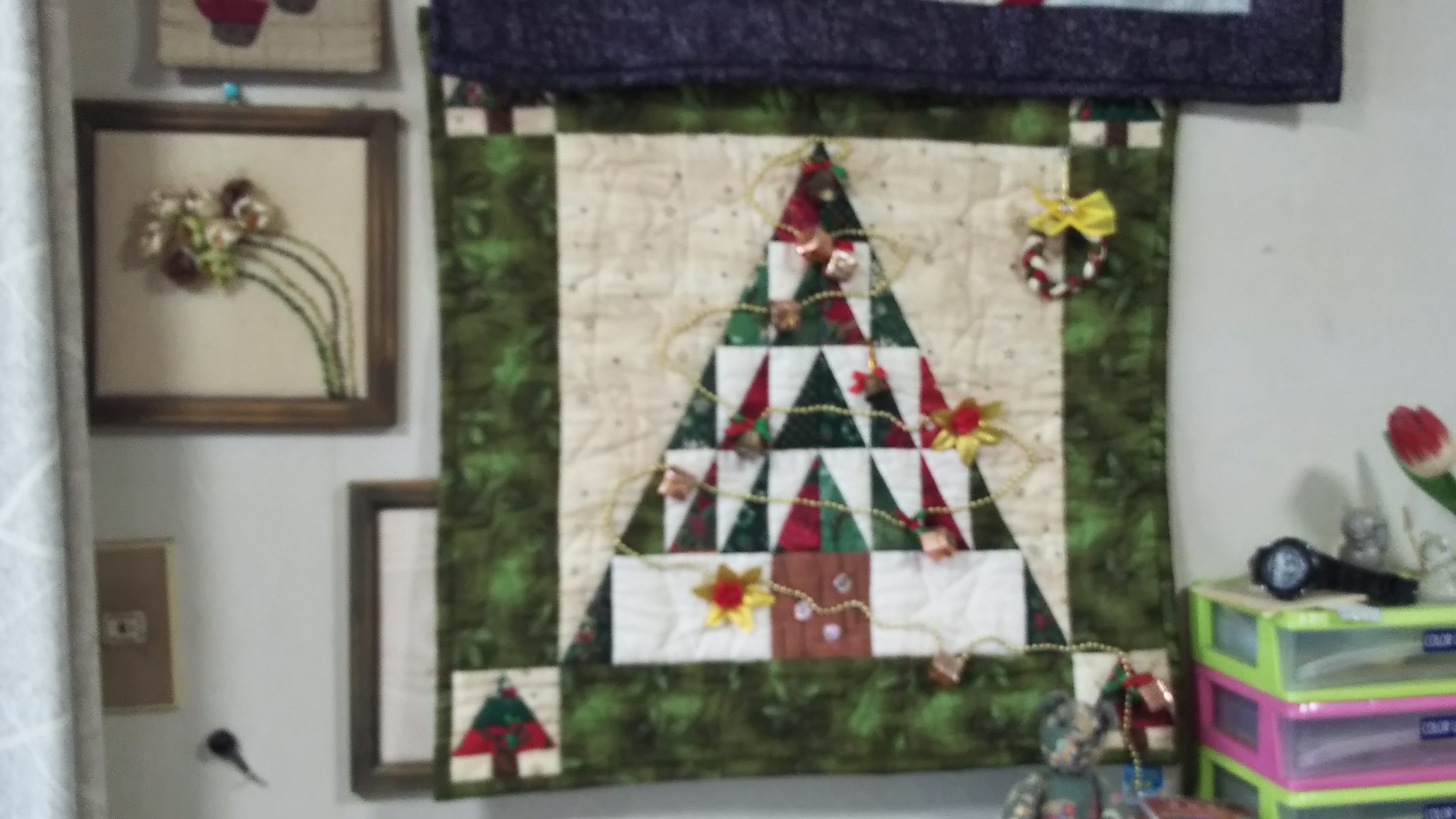 クリスマスが 近づき パッチワークしたこと 思い出し 20年になるかしら? サンタさん ツリー 出しました