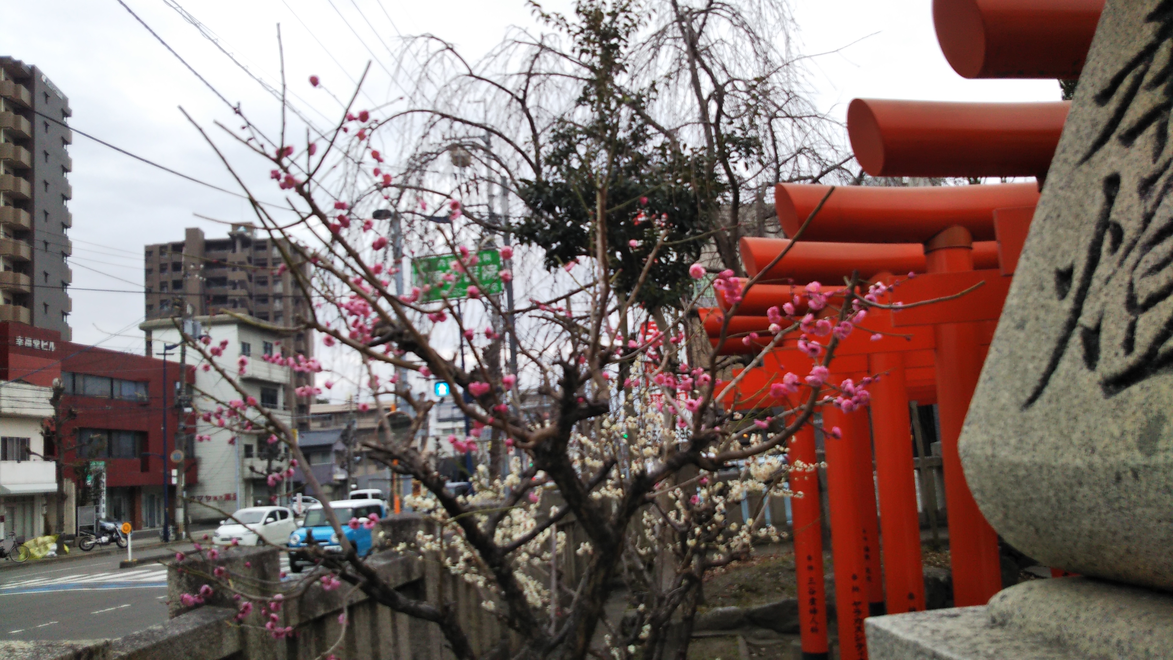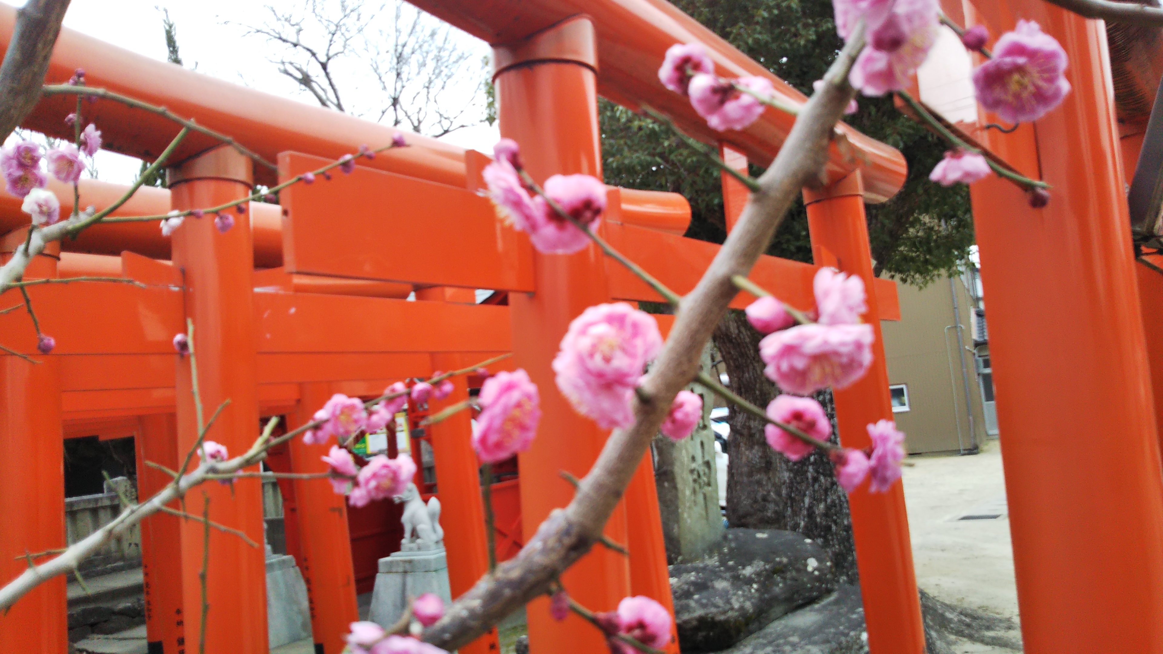 雨 降ってなく お日さまなし 今朝は フジグラン 目指して 途中の 八幡宮の梅の🌺