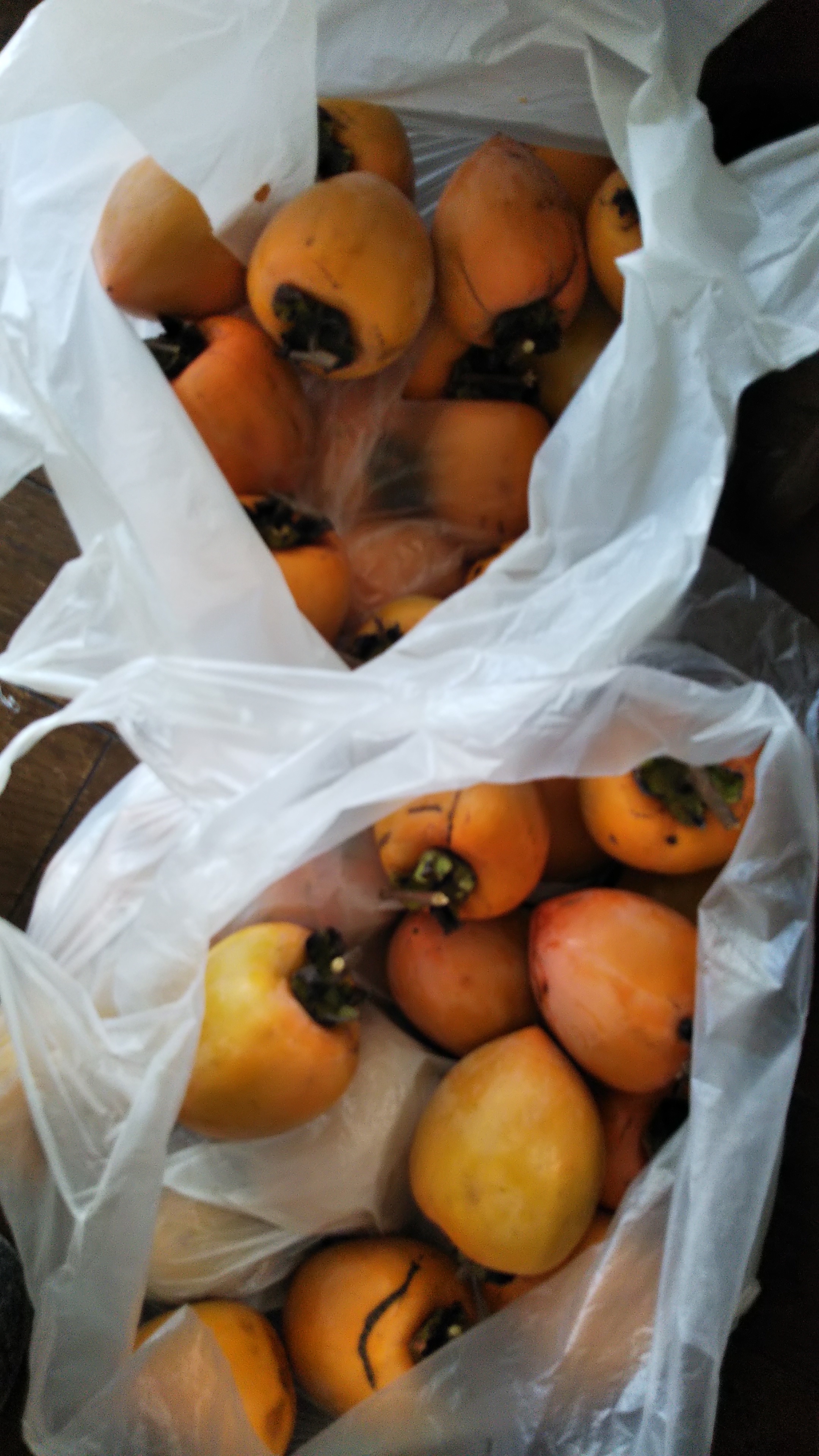 昨日 兄が 柿を 持って来てくれた 今年は 少なくて ゴメンって 昼食後 柿を剥く今年のは大きい皮を向きひも付け 熱湯消毒竿に干す
