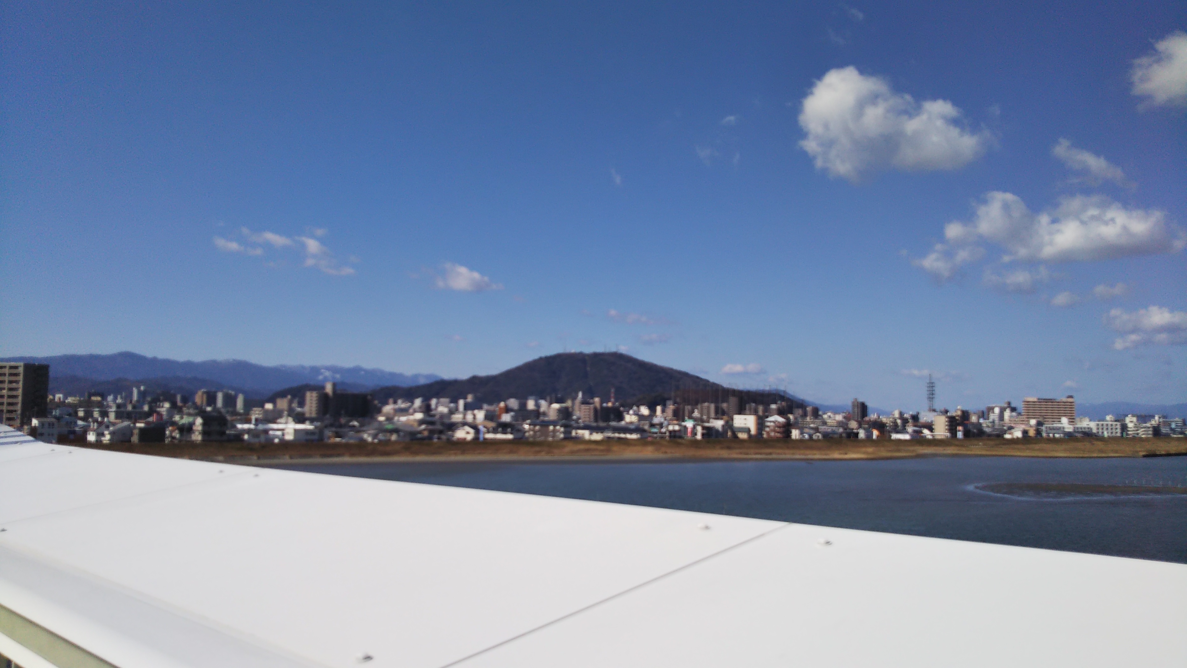 先日 しらさぎ大橋 入り口を間違え 中央市場まで 歩いた 今日は ちゃんと 入り口を 登り しらさぎ大橋を歩く 今日は 暖かく 上着を 腰に 巻き スイスイ眉山も くっきり 橋も 寒くなく スイスイ