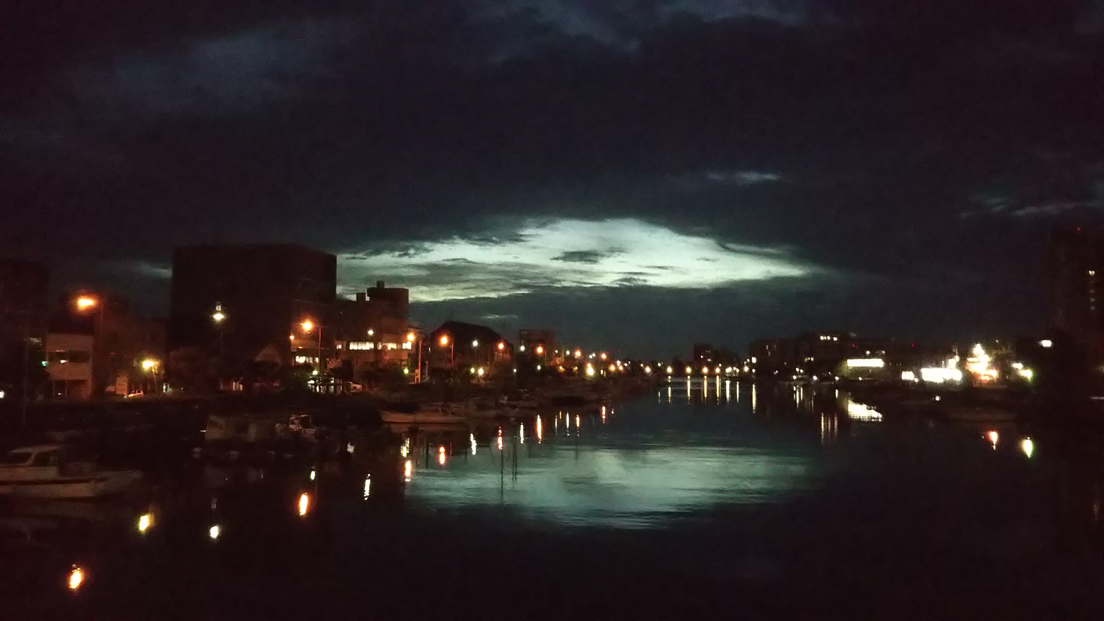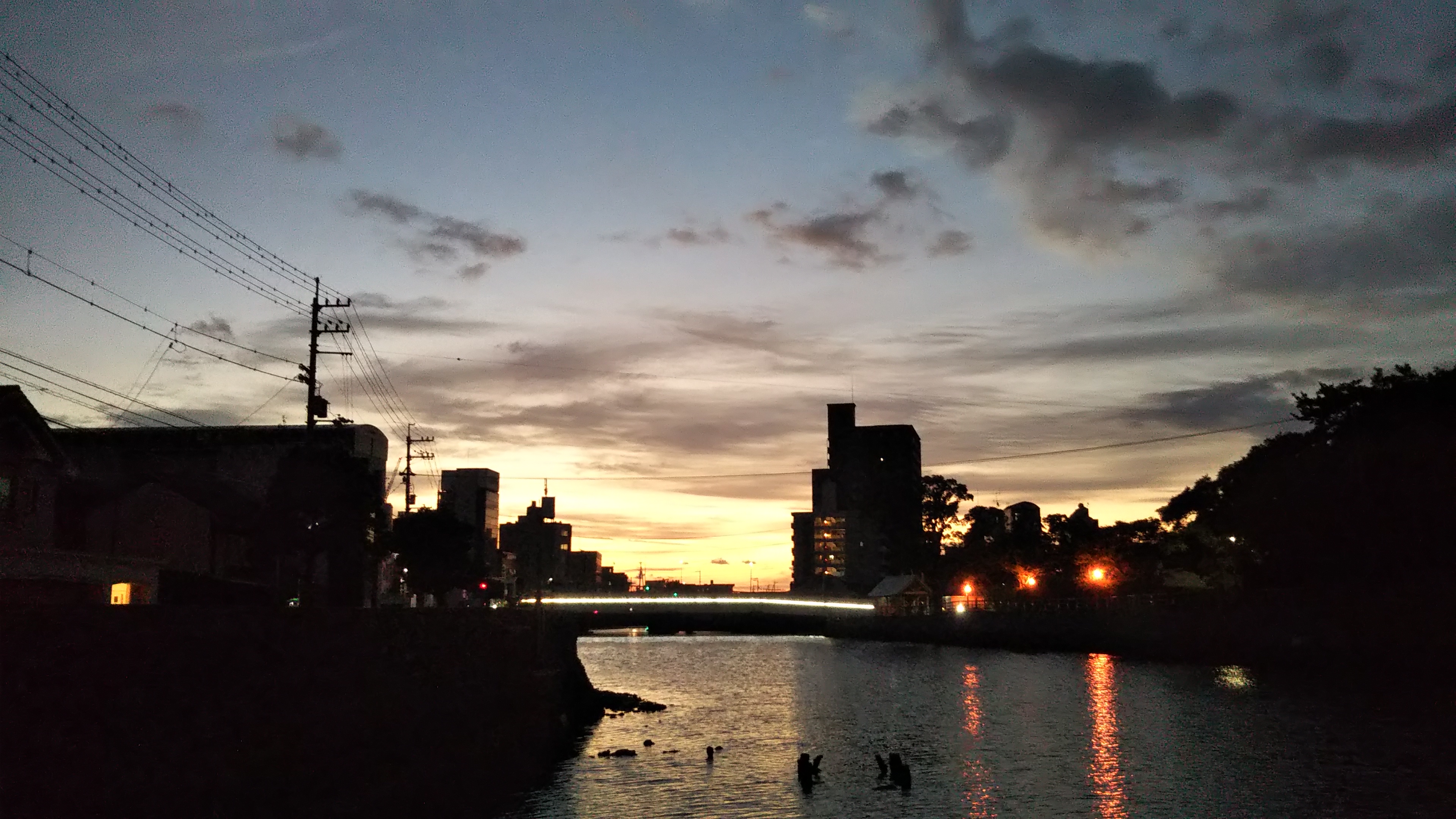 トロトロして 5時過ぎに 家を出る 助任川沿いを 歩く 東の空 明るい赤い雲 川に 写ってる