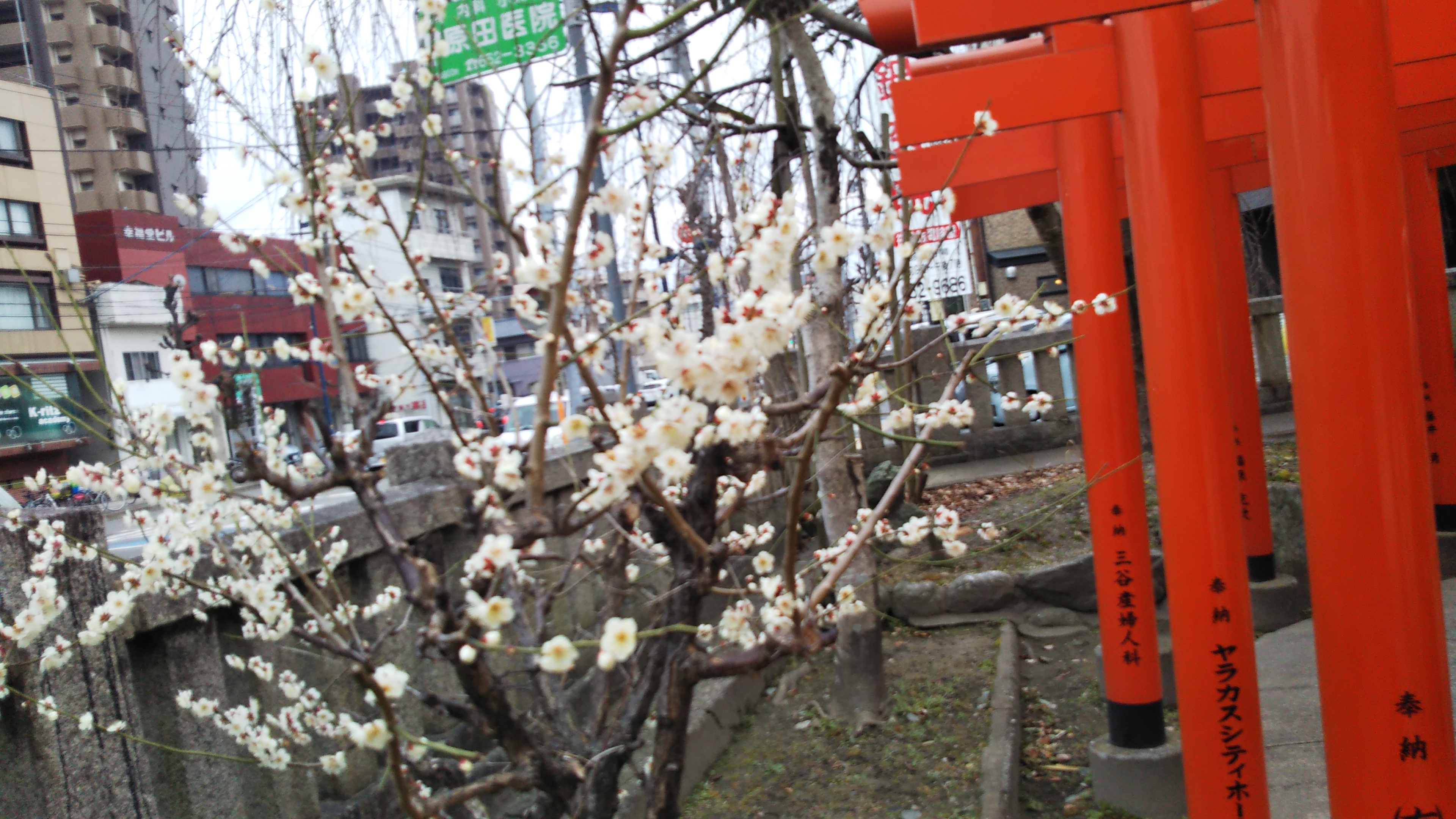 雨 降ってなく お日さまなし 今朝は フジグラン 目指して 途中の 八幡宮の梅の🌺ピンク綺麗歩数 8649歩