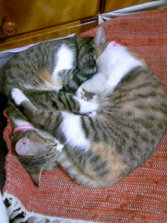 いろんなかっこうで寝てる2匹ですが、この前こんなかっこうでいて、