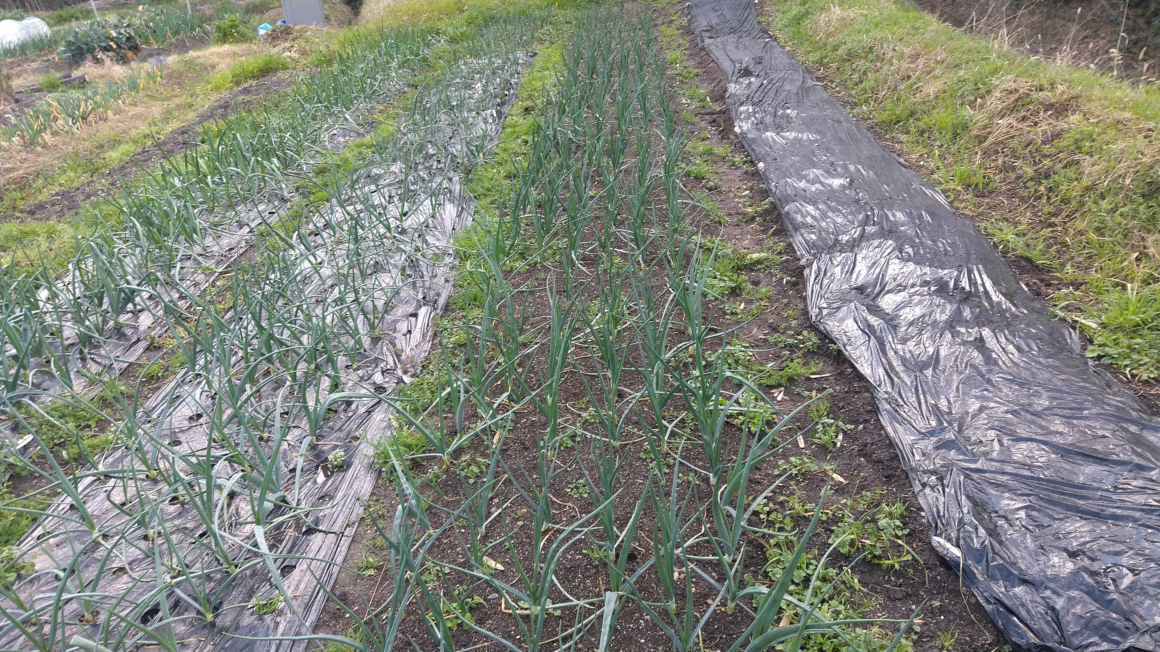 ジャガイモを植え付けてから2週間が経ちますが、右端の畝には何の変化も見られません。