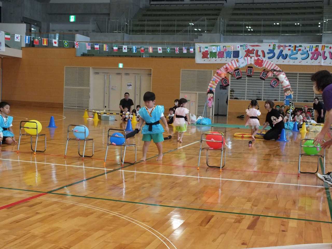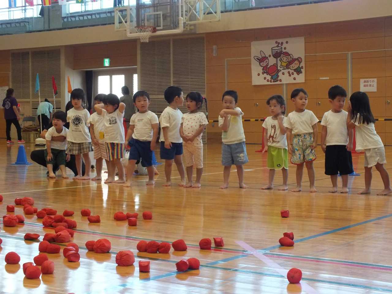 以前より体の動かし方がしっかりとして、ゴールに向かって一生懸命走る姿に大きな成長を感じました。遊戯では、友達と一緒にリズムに合わせてダイナミックに踊る様子も見られ、練習の成果を発揮してくれました。また、親子競技の玉入れでは、保育者が持つカゴを狙って保護者の方と一緒に玉を投げ入れ、普段とは違う競技に親子ともに満面の笑顔で参加されていました。目標に向かって頑張る姿や、友達、そして保護者の方との関わりの中で、子どもたちが多くの達成感や喜びを感じた運動会になったことと思います。たくさんのご声援ありがとうございました。