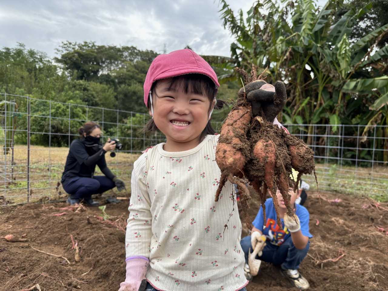 みんなで楽しみにしていた芋掘りに行ってきました!畑に着くと、子どもたちは目を輝かせ、大きなサツマイモを掘り出す気満々!土の中から顔を出したサツマイモを見つけるたびに、「あったー!」「大きい!」と歓声が上がりました。一生懸命土を掘り、自分の力でサツマイモを引っ張り出す経験は、格別な喜びだったようです。採れたてのお芋は、まさに秋の味覚!子どもたちの笑顔は、収穫の喜びと達成感でいっぱいでした。持ち帰ったお芋を、お家でどんな風に食べるのか、お話を聞くのが今から楽しみです。土の匂い、収穫の喜び、自然の恵みに感謝する、素晴らしい一日となりました。