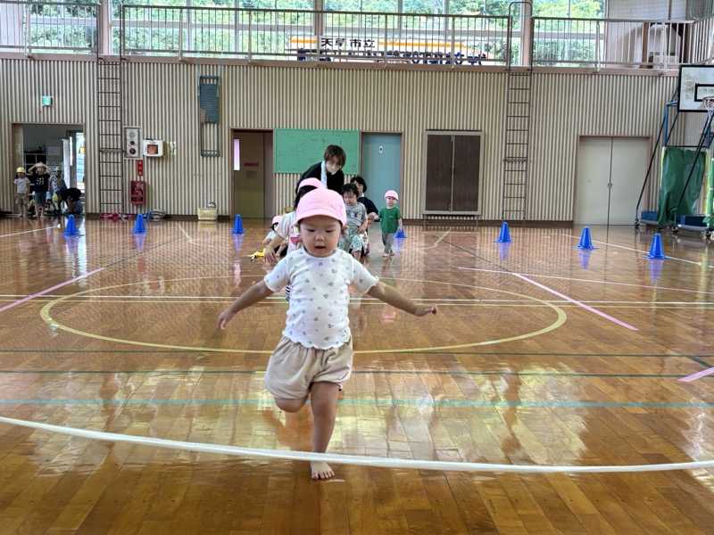 愛隣保育園では、運動会に向けて体育館で練習に励んでいます。昨日は1・2歳児クラスもかけっこやダンスの練習に参加し、一生懸命に取り組んでいました。全体で行う更新の練習も行い、本番が近づいていることを実感しています。子どもたちの体調管理と暑さ対策をしっかりと行いながら、本番に向けて楽しく練習を重ねていきたいと思います。みんなの頑張りが本番で発揮されるよう、職員一同サポートしていきます。