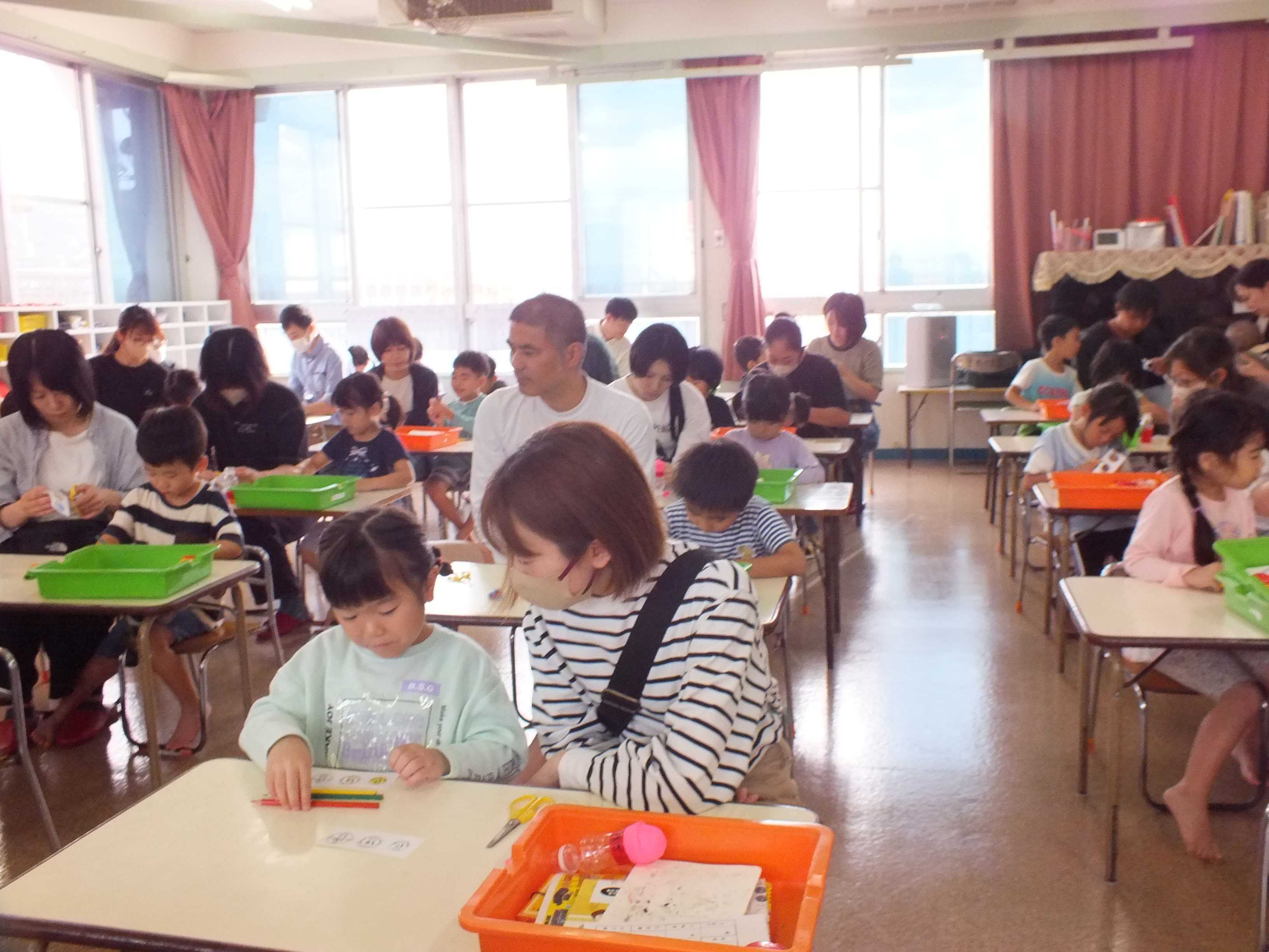 保育参観では、親子の皆様に多数ご参加いただき、ありがとうございました。前半は、保護者の方と一緒に製作活動に取り組み、笑顔あふれる素敵な作品が仕上がりました。後半は、以上児クラスの保育室がミニ縁日会場に変身!ボーリングや魚釣り、的あてと楽しい遊びに、子どもたちは目を輝かせ、保護者の方も童心に帰って一緒に夢中になって遊ぶ姿が見られました。遊びを通して、親子の絆がより一層深まったことと思います。そして、締めくくりは、楽しみにしていたバイキング給食!様々なおかずの中から好きなものを自分で選んで盛り付け、お腹も思い出も満たされる大満足の一日となりました。