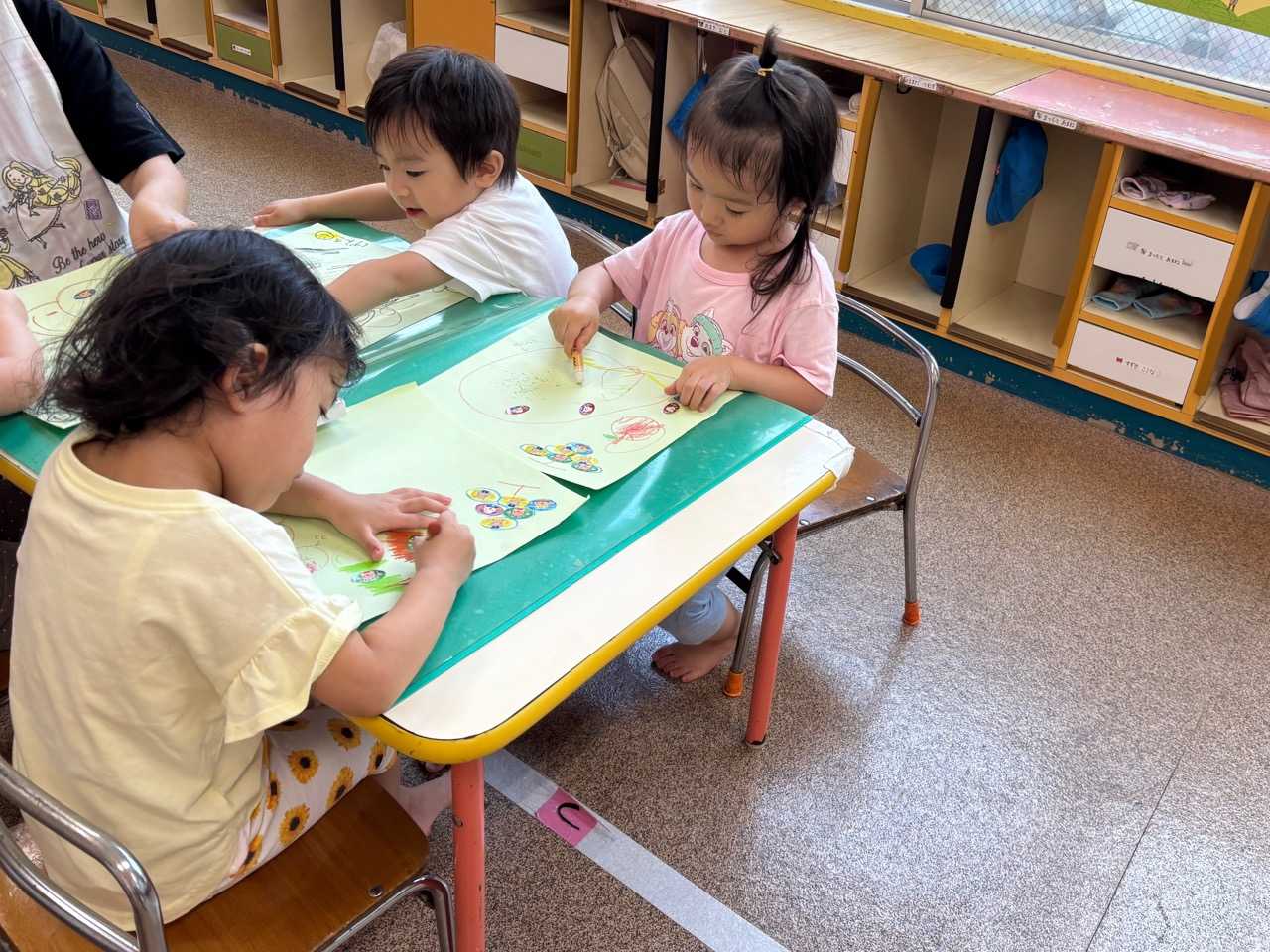 2歳児さんの今日のお絵描きタイムの様子です。みんなクレヨンを握り、真剣な表情でぐるぐる…! 描いているのは、パパやママ、そして大好きな食べ物などでした。「見て!これは、パパ!」 「こっちがママだよ!」と、教えてくれる絵には、色々な表情があって、子どもたちの豊かな感性が詰まっていました。言葉だけでなく、絵でも自分の気持ちを表現できるようになる時期。 子どもたちの描く絵は、私たち大人にとってたくさんの気づきを与えてくれますね。これからも、のびのびと表現できる時間を大切にしていきたいと思います。
