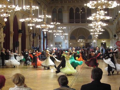 こちらシニアIIIスタンダードの予選の様子です。舞踏会みたいですね。