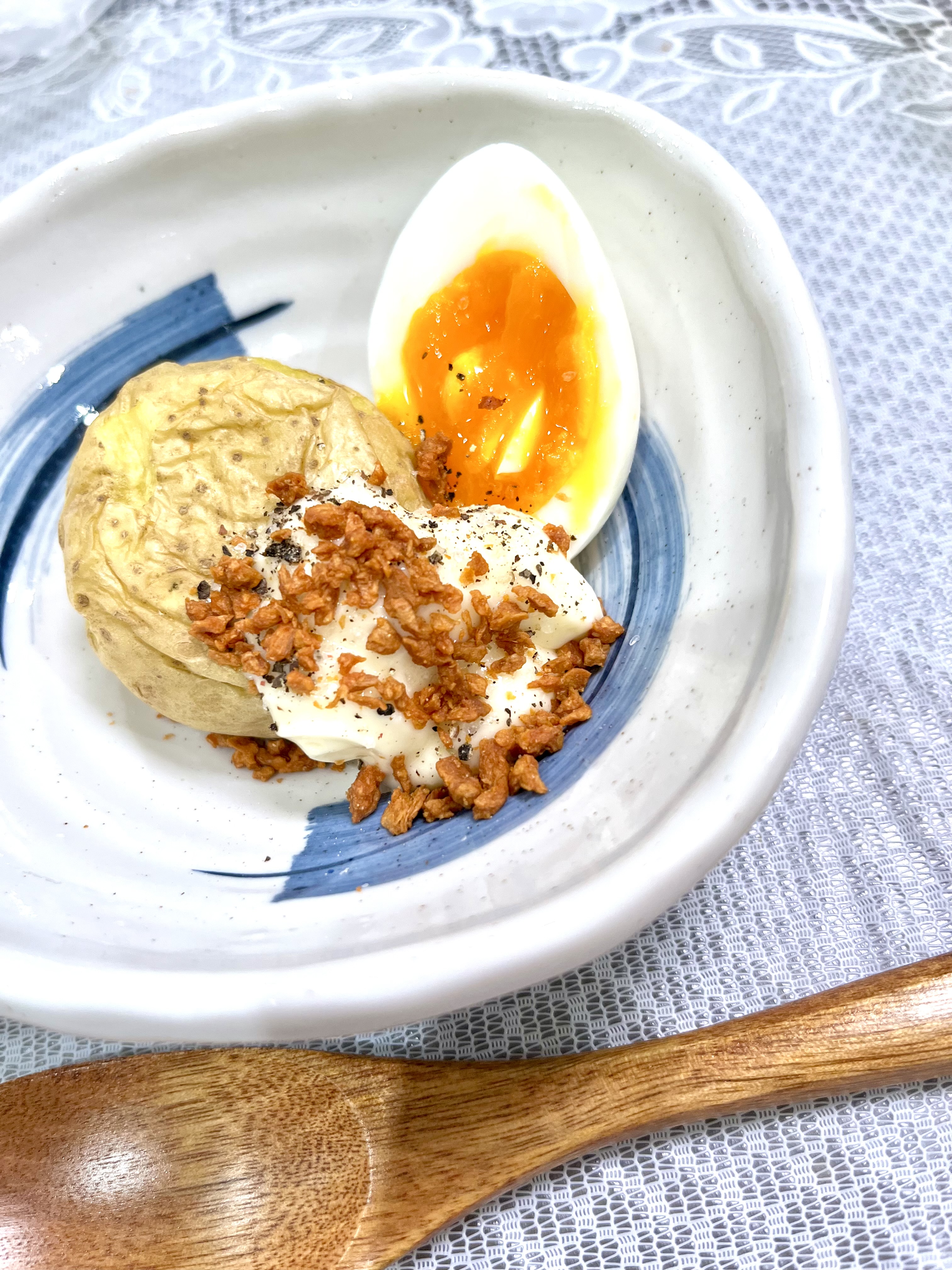 自分で完成させるポテトサラダお酒のつまみ、おやつ、ご飯の副菜に簡単に作れる激うまポテトサラダです。以前、居酒屋で出てきたポテトサラダを思い出して作りました。 《材料(1人分)》じゃがいも・・・1個ゆで卵・・・1/2個ベーコンフレーバービッツ・・・小さじ2塩・・・適量ブラックペッパー・・・適量マヨネーズ・・・適量 《工程》じゃがいもの皮をむく。(皮付きが好みの場合は省略)耐熱容器にじゃがいもを入れ、ラップをして600Wで4分温める。じゃがいもが冷めたら、マヨネーズ、ベーコンビッツをかけ、ゆで卵を添える。塩、ブラックペッパーをかける。崩して混ぜれば完成。 じゃがいもは切ってからレンジで温めたほうが崩しやすくなります。 じゃがいもが温かい状態で作ったり、卵なしでも美味しいです。 ブラックペッパー多めがおすすめです。≪370g×2本セット≫【McCormick】マコーミック ベーコンフレーバードビッツ L ◇サラダのトッピング等に♪◇ 調味料 ベーコンフレーク ベーコンビッツ 大豆たんぱく 大豆 ふりかけ ヘルシー【costco コストコ コストコ通販】★送料無料★価格:3,580円(税込、送料別) (2024/11/15時点)楽天で購入