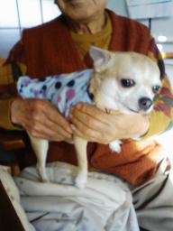 お正月も五日になりました。ついこの間までは準備に追われていたのに、もうお重箱や、お寿司の入れ物も片付いてしまいました。日が経つのは早いものです。何時もの静かな家に戻りました。お天気は今日もすっきりしません。皆さんのお正月は如何でしたか? タロウと遊ぶ事が多くなりました。娘も今日から仕事です。毎年元日にはお雑煮でお祝いするのですが、今年は孫達が来るので朝はパンで済ませて皆が集まるのを待ってお重箱やその他を広げました。皆が帰った後は綺麗さっぱりです。でもその為に暮から用意をしたのですから。又元の静かな生活に戻りました。孫達が居ないと静か過ぎて淋しい気がします。孫も又元のように慌しい日々に戻った事でしょう。年賀状も毎日の様に配達されて来ます。今日はタロウのお話ーーータロウもお正月用に新しい服を娘に縫って貰って一段と男前も上がりました。昼も夜も同じ部屋にいますが夜は寝室の私達のベットの横に自分用のケージに入って寝ていますが、昨夜おしっこがしたてくて「フーん、フーン}と呼んで起されました。寝る前には、何時もオシッコをさせるのですが、時々起されます。それと、犬でもいびきをかくのですね。夜眠って居る時、時々いびきをかいているので始めはなんだろうと思いましたが、タロウのいびきと分かって主人と笑ってしまいました。この頃はタロウも重たくなってメタボにならないかと少し心配しています。