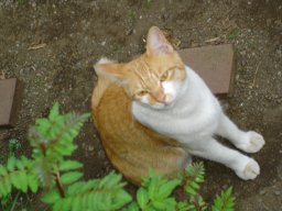 落花生が育ったことを書きましたが、本日帰ってきてみると端の一本が枝がべたっと寝て元気がないんです。よくみると枝が折れてました。好きな人には怒られるのでしょうが、絶対隣のねこがトイレかなんかの代わりにして引っかいたゆえに枝が折れてしまったのでしょう。寝るのは別に許してあげてもいいけど引っかくのだけはやめて欲しいものです。他の子に被害が出ないようにネギの柵を外して落花生のプランターを囲いました。でも、柵すると風が通りにくくなるような気がするのですが気のせいでしょうか。今年は、なぜかなにかと問題の多い年ですね。犯人最有力候補は、今年登場のやつで以前にも登場したこいつです。