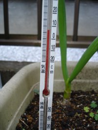 小さいんですけどね。直径?10センチほど。開いてきてしまったので、急遽収穫。 本当はオレンジ色になるはずなんですが・・・?果たして芽キャベツもこのままでよいのか?疑問符ばかり。なんか下のほうは開いてきたし。スーパーで見るともっと大きいんだけどな。土と栄養が限られている無謀な豆プランター。とりあえず、風には負けなかったようです。良かった。しっかし、どうやって追肥するべきや?本当に、疑問形、否定形ばかりですが、本日も順調に下がってます。温床温度。もう一回混ぜて、だめなら完成ということでしょうか?隙間風?「人を愛して・・・」じゃないでしょうに。野菜だよりを本日購入して、中を見て、バケツ稲作かなんかにちと興味を。本日は休養日。吹奏楽練習もサボって、本日は以上。おやすみなさい?