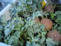 何も出来ずに、やや欲求不満。でもすこしずつ。今日は昨日も少し触れたインカがマルチを持ち上げてましたので穴を切り取りました。まさに夜明けであり、目覚めですね。 今年は、種芋4つ全部芽が出ました。また少し、籾殻で保温目隠しかけて健やかな成長を待ちます。残念ながら、温室内でアンデスレッドの芽だしをしていますが、まだ伸びてこないため、植えつけられません。本日の収穫は花が咲きそうなスティックセニョールのみでした。結局、物覚え悪く勉強にも実が入っていません。本日は以上。