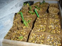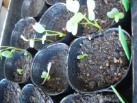 とりあえず、午前中は何もすることなく経過報告のみ。チューリップやはり昼間は開いています。 さて懸案の豆類も漸くいろいろ変化。温室内の温度もだいぶ高いです。落花生、発芽しましたよ。 先週発芽、オクラは一番奥ね。エンドウ、ソラマメも実が着き育っていますよ。 植物は強いですね。霜焼けもだいぶいえてきたインカです。今日は、こいつの芽かきをすることにしましょう。本当は、温室撤収したいのですが。ソラマメ等アブラムシ対策はあまり要らないのかも。開花芽キャベツがバンカープランツとなって自己犠牲を払っているようです。また後ほど。
