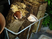 昨日の?椎茸本日収穫して、食しました。気持ち縮んではいたものの味は濃いですね。おいしく頂きました。 もっと、取れないかな?本日は至って短く以上。おやすみなさい。追伸現在ベーコン塩抜き中。肉が少なく油多い。なんだかな?