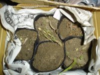 今、ショックで沈んでます。何がって、あさってからの本当久しぶり旅行雨ですって。納得行かん勝手に天気予報変えないで。安定しない春なのね。気を取り直して、仕切りなおし。本日は、実家に土を持って行き乾かしました。明日撤収袋詰めします。本日ゆっくり見てますと、サラダごぼうも発芽確認。大根含めて、本当にどこに植えるか?空きプランターがないです。一方我慢できなくなって、アブラナ科種採取は興味減らして、シソまきました。無茶苦茶混植です。当然昨年と一緒、自然薯も植えました。さて、今年のこの誤算どう出るか?落花生苗も本日発送。これ以上置いておくと縮んでしまいそうで、早く定植してと、人の迷惑考えず送っちゃいました。先日の寒戻りでオクラは一人亡くなっています。