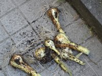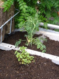 最近このパターンが多いのですが、愚痴ってからスタート。本日愚痴は植える場所がない。よって、抜かれるもの、植えられるものの大変更。おかげで大プランターがひとつ空きました。本当は、連休後半予定でしたが、土袋が切れてしまい急遽本日実施。まずは抜かれるもの、プランター園芸教科書で芽が出ても食べられる旨ありましたので、場所もないことですので、迷うことなく全撤収。ニンニクは移植。本当はここまでだったはずが、夕方、土干しから帰ってきた土袋が切れてしまいましたので、追加で買ってきたプランターとともに。苗類定植です。 本日定植は、サラダごぼう、辛味大根、シシトウ、トウモロコシ、インゲンです。目のいい皆様は、きっと画像で判断されるのでしょうが。でも、ちゃんとまめなこともしてますから。バンカープランツ、スティックセニョールを撤収しましたせいか、アブラムシがソラマメに多くなってきましたので。ASAさん流銀紙作戦。 全景でも光ってるかな?小さなまめな作業は、ほったらかしインカ端っこに植えちゃいました。あとは本人しだい。本当は忘れていません。植える場所がなかっただけです。 リトルサマーキッスも花が付いてます。自然薯種芋、芽が出てきてます。さて、この後をどうするか。楽なのは地植だよね。 この時期土寄せをするはずのジャガイモたちには、マルチをはがすことなく、プランターでは追い土です。生分解式は臭いだけで、切るのに難しいです。落花生は、いま少ししたらマルチははがします。本日、プランター園芸は以上にしておこうかとおもいます。