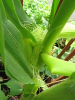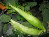 台風対策は雨の降ってない今のうちなんですかね?今ひとつ気が乗りません。気になっていたミニトマトは割れる前に里親さんちで収獲してくれたのかも。よかったよかった。この雨時期はね、どうしても割れてしまうんですよね。 一方リコピノ桃太郎いつの間にかに二つになっていましたが、こいつらこそ対策しないとね。どこまで行っても今年はちいさなトウモロコシ。午前中収獲昼食と言うとねえ。時間的に限られるのですが、どうしたもんだか。多分実が入っているのは10センチぐらい受粉失敗ですかね?隣猫は2匹は外に遊びに行きました。本日は以上。おやすみなさい。