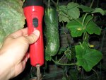 おそうなりました。なんか性格のせいか年のせいか、頭硬くて、一日数字を見ていて脳みそ溶けてましたので、アルコールにて凝固しておりました??タイトルどおり、日々大きくなっているような。昨日は先のほうはいま少し細かったものが、満遍なく太くなってきたようです。単2?2本乾電池懐中電灯と比較して、ご想像下さい。瓜は相変わらず雌花無し。人からネタ貰って、うちの大根君です。出身が良いのか元気に育っています。明日気分がのれば一本抜いて、トリカラみぞれだかにしてみようかな? プランター左半分がサラダごぼうです。どの子にも追肥せんとね。トマト枝豆、なんかすごい状態になってます。本日は以上。おやすみなさい。
