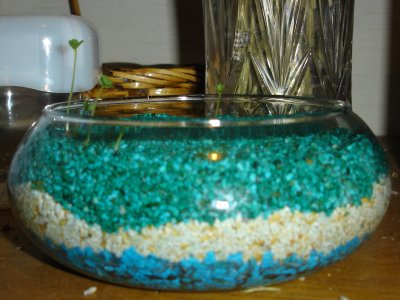 涼しげなガラスボールはルッコラが発芽したんですがぜんぜん涼しげでないです。少し液肥足してみよ。