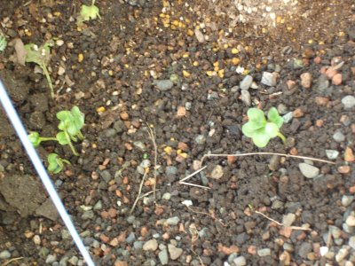 写ってませんが、右奥は先日もお伝えしたように、猫トイレ事件からは生き残り本葉まで出てきたのです。