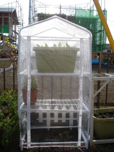 どこかで、温室買ったよと見て、気になっていた大根ほうれん草君の成長&タネまき遅れを補うべく風邪が治りきっていないところのリハビリかね温室購入。