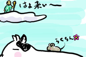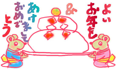 ↑この落書きは年賀状用じゃないのですが・・・例年もっと年末ギリギリになってから作業にとりかかる年賀状作りですが、今年はちょっと早めにはじめてみました。アネージャもいま作っているとのことなので二人とも忙しく、ブログ更新をサボっているところです私は下書きが終わりPhotoshop Elementsで着色しているところですが、0時をまわったところで作業中断。寝ようと思ったのですが久々にブログ更新することにしました。上の落書きは、神様が干支を決めた時のお話を思い出しながらちょっと描いてみました。確か神様が、「12種類の動物で干支を決めるよ~。早い者順だから急いで来てね」と言い出したので、色んな動物が神様のところを目指して行ったんですよね。みんなが頑張るなか、かしこい?ネズミは考えました。「こんなちっちゃい体で真面目に走るなんてしんじらんなーい。 そうだ、牛の背中に乗って行ってやれぃ」ネズミは牛の背中でのんびりゆられて行き、神様のところに到着したとたん、ぴょぃんっと飛び降りて1着でゴールインしたため、十二支では1番目がネズミ、2番目がウシになりました。。。。。。。。。という話でしたよね。他の動物についての話もあったんでしょうかね?私は知らないようですそれから、アネージャはイラストを印刷し終え、宛名書きに入ったようです。from イモウージャ
