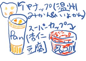 最近のお気に入りコンビニアイスクリームは、この2つです※1:イラストはかなりうろ覚えで描きました※2:スーパーで買ったのですが何と表現したらよいか分からず"コンビニアイス"としました。明治エッセル 「スーパーカップ 杏仁豆腐味」 さっぱりした甘さの中に、アンニンの味がちゃんとします。 スーパーカップなので量は多いですが、最後まで飽きずにペロリと食べちゃいました。グリコ 「パナップ 温州みかん&いよかん」 バニラっぽいアイスの中に柱状に注がれている甘いソース。 このソース柱が、温州みかんソース2本、いよかんソース2本で計4本入っています。 アイスクリームの部分とソースの味が絶妙にマッチしていてかなり美味しかったです。寒い冬に食べるアイスクリームもなかなか乙です。今年こそはダイエット! の誓いは、今冬のアイスクリームラインナップを調査してから再開したいと思いますfrom イモウージャ