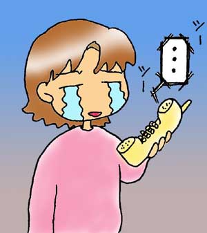 こんにちは~久々にイラスト入りの日記の更新です日々色々な困難に遭遇しているのですが。今回はこの前やっちゃった失敗のお話・・・皆さんはどんな電話機を使ってます?私は、親機と子機に分かれている電話機を使っているのですが、親機は壁にかけていて、主に子機を使っています。バタバタ忙しくしている時に限って、お客さんが来たり、電話がかかって来たりしますよねぇその時もそうだったのです。忙しいのに電話がけたたましく鳴ったのです。そして・・・「はい モシモシ」と勢いよく出ようとしたらやっちゃいましたよぉぉ子機が手からスルリと抜けて、床にゴツンと音を立てて落ちました 何度か落としているのですが、今回は駄目でした・・・その落下事故以後、子機は使えなくなってしまいました。ただ、ツーツーと鳴るばかりの子機・・・。今は生き残った親機を主に使っているのですが、壁にかけているので、気をつけないとそれも落としそうで怖いです皆さんも、忙しい時の電話には注意してくださいね FROM アネージャ