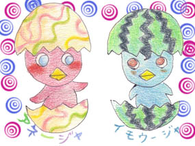 このブログは私(イモウージャ)と、姉(アネージャ)の二人で、それぞれ時間のあるときに更新しています。最近のブログにある通り、ただいまアネージャは旅行中です。その前に数日うちに泊まりに来ていました。久々に会えたので一緒に何かしようということで、今まで金魚の写真だったプロフィール画像を、アネージャ&イモウージャの絵にしてみました。左がアネージャ、右がイモウージャです。アネージャが描いたのがカリメロちっくな生物だったので、私もそれを真似しました。色も色鉛筆で、各自塗りました。頭が少し長い気もしますが、気にしません。アネージャは少しシャクレ気味な気もしますが、気にしません。これからこの自画像?でいきますので、どうぞよろしくお願いします。・・・余談ですが「プロフィール」と「風呂入る」って似てませんか?さきほど間違えて「ふろふぃーる」と入力して漢字変換したら「風呂フィール」となったのでピンときたのですが。いつか絶妙のタイミングで使ってみたいダジャレですが、使える状況が想像つきません。一応心の引き出しにしまっておこうと思いますfrom イモウージャ