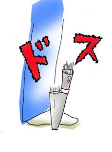 私はどちらかと言うと「ボゥ・・・」とした方かもしれません。しかし、何か行動する時にはそれなりに気をつけて行動しているつもりです。 「気をつけて行動しているつもり」ではありますが、時々自分でもドキッ!!とする失敗をしてしまいます。その日は、ちょっとだけ急いでお料理をしていました。包丁で刻んだ食材を、急いでフライパンで炒めて・・・と忙しく動いていたのですが、いつもなら注意して落ちないように注意して置く包丁を、忙しさから「この位なら大丈夫」と思い、まな板の端の方に置いてしまったのです。そして、手がちょっとだけ包丁にふれてしまったのです。落下する包丁を見て「しまった!」と思ったのですが、時既に遅し・・・!!恐怖で体が動きません!!ドス!と 音を立てて、足をかすめ床に突き刺さった包丁を見て「助かったぁぁぁ」と心の底から思いましたよぉ今でも台所の床には、その時についた包丁の刺さった跡がクッキリと残っています。FROM アネージャ